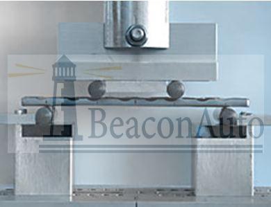 測試是以美國標準ASTM F382為基礎(chǔ)的該標準對金屬骨板的規(guī)格和試驗方法作了標準化的規(guī)定。測試夾具能準確地復制在一個循環(huán)中的彎曲力矩,并能對金屬骨板的材料和設(shè)計進行疲勞評價。四點彎曲夾具是由兩個在加載夾具中心附近的加載輥,和兩個在試樣兩端的支承輥所組成的。滾筒有不同的尺寸,以適應(yīng)不同大小的骨板試驗。