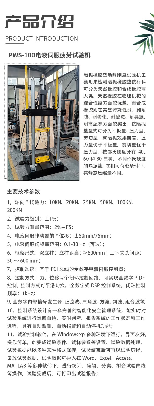 預埋槽道螺栓疲勞隔振橡膠墊動靜剛度試驗機