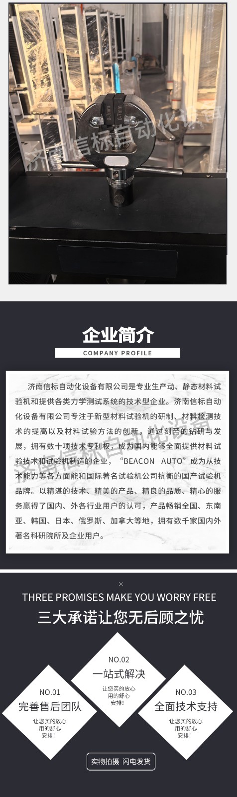 濟南信標自動化設備有限公司主要生產:動靜態萬能疲勞試驗機,接骨板彎曲試驗機,縫合線拉伸疲勞試驗機,髖膝關節磨損試驗機,電子萬能試驗機、液壓萬能試驗機、巖石三軸、四軸,電液拉力試驗機,材料試驗機,高低溫蠕變,高低頻疲勞,拉伸、扭轉、杯突等二十多個系列兩千多個的品種。