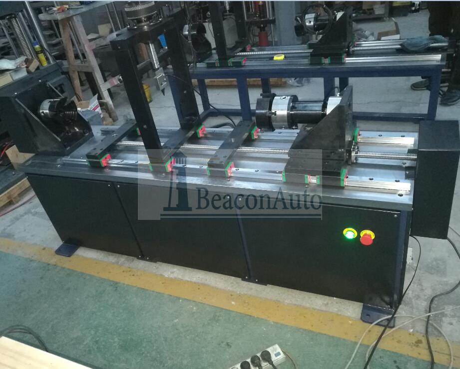 扭轉部分是由加載系統、傳動系統、數字式數據采集處理系統及計算機測量控制顯示系統等組成,適用于對軸流風扇靜態扭轉力學的性能測試。該機采用落地臥式結構。計算機屏幕顯示,數字式數據采集控制系統和全數字交流伺服系統組成閉環控制。采用行星擺線針輪減速器傳動,具有加載均勻、穩定、無沖擊現象、數據采集控制準確的特點。