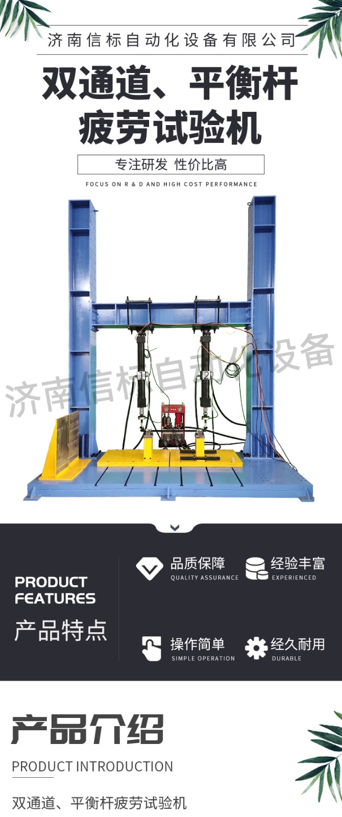 濟南信標自動化設備有限公司主要生產:動靜態萬能疲勞試驗機,接骨板彎曲試驗機,縫合線拉伸疲勞試驗機,髖膝關節磨損試驗機,電子萬能試驗機、液壓萬能試驗機、巖石三軸、四軸,電液拉力試驗機,材料試驗機,高低溫蠕變,高低頻疲勞,拉伸、扭轉、杯突等二十多個系列兩千多個的品種。