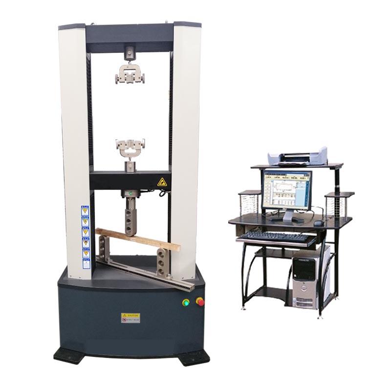 MWD-10A微機控制人造板萬能試驗機 微機控制人造板萬能試驗機型號:MWD-10A 微機控制人造板萬能試驗機執(zhí)行標(biāo)準(zhǔn): GB/T16491-1996《電子式萬能試驗機》 GB17657-1999《人造板及飾面人造板理化性能試驗方法》 GB2611-92 《試驗機通用技術(shù)要求》 GB/GB/T16825-1997《拉力試驗機檢驗》 GB/T528-1998中的要求和GB、ISO、ASTM、DIN等多種標(biāo)準(zhǔn)的數(shù)據(jù)處理,還可以根據(jù)用戶提供的標(biāo)準(zhǔn)及要求進行添加和補充。 微機控制人造板萬能試驗機適用范圍:主要進行內(nèi)結(jié)合強度試驗、表面結(jié)合強度試驗、表面膠合強度,抗拉強度試驗,靜曲強度試驗,彈性模量試驗,握螺釘力試驗等多項人造板及飾面人造板的理化性能試驗。具有試驗速度設(shè)定,試驗力值顯示,最大試驗力值顯示功能。同時,還具有限位保護和過載保護等功能。 微機控制人造板萬能試驗機主要技術(shù)指標(biāo): 1. 最大試驗力: 20kN 2. 測 量 范 圍: 最大試驗力的0.4%-100%。 3. 試驗力精度: 優(yōu)于示值的±0.5% 4. 試驗力分辨力: 1/300000(全程不分檔或等效6檔) 5. 橫梁位移測量精度:分辨率高于0.001mm 6. 變形測量精度: ±0.5%(在0.2-10mm范圍內(nèi)) 7. 試驗速度范圍: 0.01-500mm/min,無級調(diào)速 8. 速度控制精度: ±1%(0.01-10mm/min); ±0.5%(10-500mm/min) 9. 恒力、恒變形、恒位移控制范圍: 0.2%-100%FS 10. 夾具形式: 見附件 11. 整機電源:單相,220V±10%,50Hz,功率:1.5 kW 12. 工作環(huán)境:室溫—35℃,相對濕度不超過80% 13. 主機尺寸: 760 mm×530 mm×1760 mm 14. 整機重量: 420 kg 微機控制人造板萬能試驗機產(chǎn)品特點: 1. 主機 1.1主機采用高鋼度門式框架結(jié)構(gòu),強度高、變形??; 1.2 采用進口高精度滾珠絲杠,傳動高效平穩(wěn); 1.3 傳動部分采用圓弧齒同步帶傳動,傳動過程中雙向無間隙; 1.4 采用交流伺服電機及驅(qū)動系統(tǒng),確保傳動平穩(wěn),力矩穩(wěn)定,具有過流、過壓、過載等保護裝置,調(diào)速比可達1:100000; 1.5 夾具經(jīng)特殊設(shè)計,夾持牢固,操作方便,無鉗口滑移現(xiàn)象; 1.6 特殊工藝保證試驗機同軸度,很好的消除了不規(guī)則試樣對傳感器的影響。 2. 控制系統(tǒng) STC300全數(shù)字閉環(huán)測控系統(tǒng)具有許多先進的特性和技術(shù)創(chuàng)新,主要體現(xiàn)在: